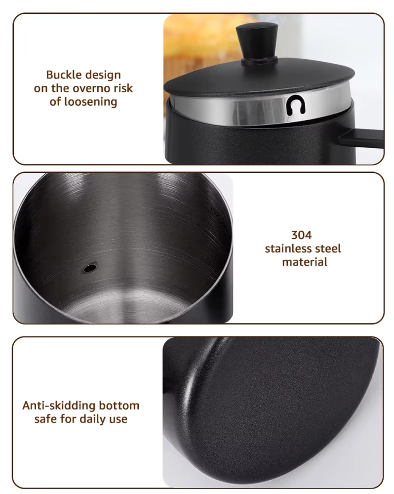 - غلاية قهوة مقطرة مصنوعة من الفولاذ المقاوم للصدأ لضمان المتانة وطول العمر
